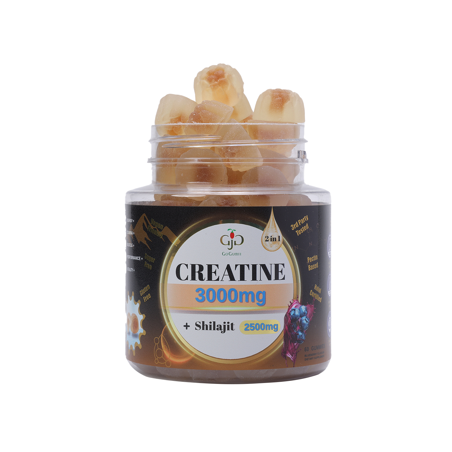 Boost your fitness with our Creatine + Shilajit Performance Gummies. This blend enhances strength and muscle growth using creatine, Shilajit, Ginger, Black Musli, and Ginseng for optimal performance.